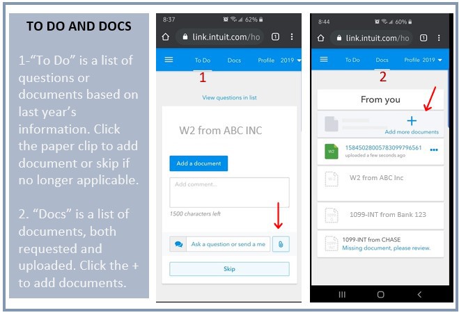 1. Upload your documents to our secure site, Intuit Link. (See information on Intuit Link below).